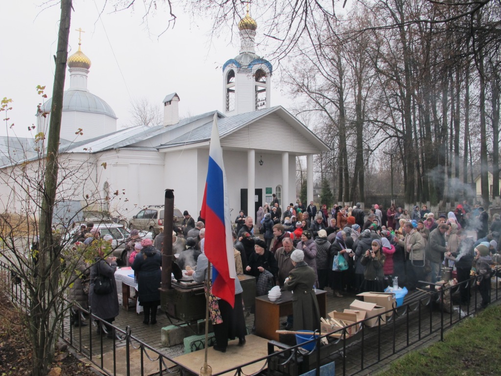 4 ноября 2013 года православные верующие молитвенно отмечали праздник Казанской иконы Божией Матери и исторически связанный с этой иконой, молодой государственный праздник — День народного единства. На нашем приходе в этот день служилась праздничная литургия, которую возглавил настоятель, протоиерей Олег (Михайлов). После службы, на площади перед храмом, всем желающим было предложено угощение.